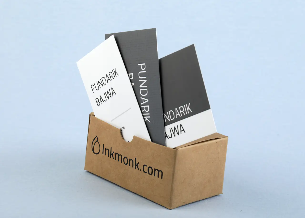 Each bundle of 100 cards are placed in a separate visiting card box and packed with the exterior Inkmonk box to be delivered at your doorstep.