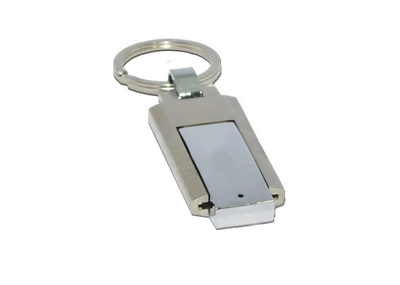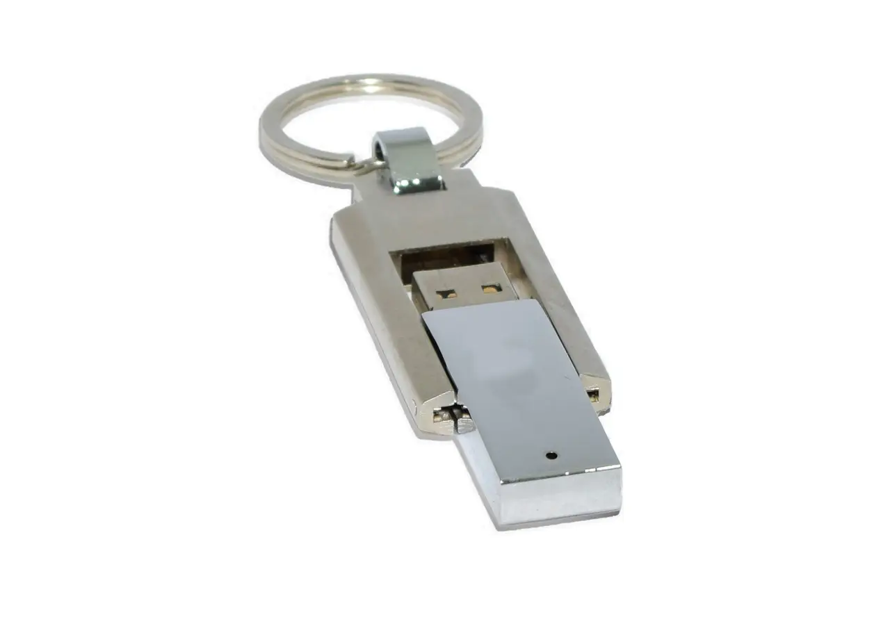 • A USB Drive with a silver metal key ring